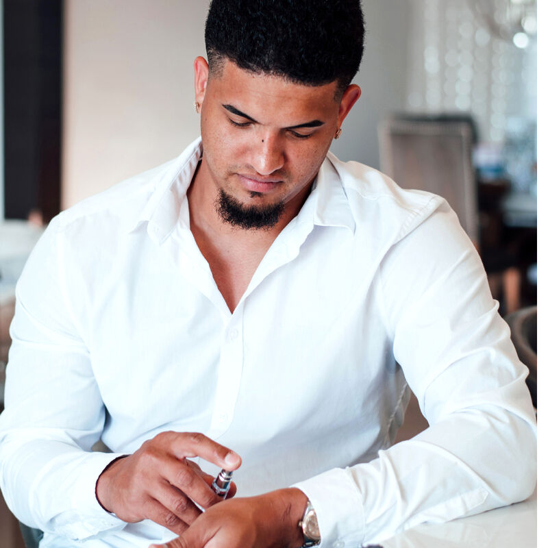 Denken Sie an Eichenmoos, Zitronengras und Nelke, gemischt mit Geranie, Sandelholz und Minze, alles überlagert mit einer subtilen Basis aus Vanille, Jasmin und Zeder. In Kombination mit den in den Duft eingearbeiteten Pheromonen entfaltet sich die Sinnlichkeit auf natürliche Weise. Sie werden das Selbstvertrauen ausstrahlen, das Sie schon immer hatten, und den Antrieb haben, Ihrem Date oder Partner dabei zu helfen, die Dinge zu erkennen und sich daran zu erinnern, die Sie zusammengebracht haben.