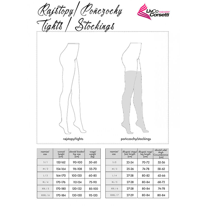 Die einzigartigen Strümpfe von LivCo Corsetti wurden für befreite, selbstbewusste Frauen geschaffen, die keine Angst vor ihrem Sexappeal haben. Strümpfe sind ein Element der Damengarderobe, das die Herzen vieler Frauen und anderer erobert hat. Sie betonen wunderbar die Schönheit der Beine von Frauen und sind gleichzeitig sexy und erregen die Sinne. Das Modell ist eine Kombination aus Spitzengürtel und Strümpfen, die perfekt zu anderen Elementen erotischer Dessous passt. Unterwäsche für besondere Anlässe, aber auch für den Alltag. Spitze am Oberschenkel wird sicherlich die Aufmerksamkeit auf die Beine lenken. Dies sind einzigartige Strümpfe, die in ihrem eigenen Tempo eine sinnliche Überraschung offenbaren. Ein Unterwäschemodell für echte Verführerinnen, die auffallen wollen. Die Strümpfe sind aus hochwertigem, strapazierfähigem Material gefertigt, sodass sie lange halten. Erhältlich in den Größen SL