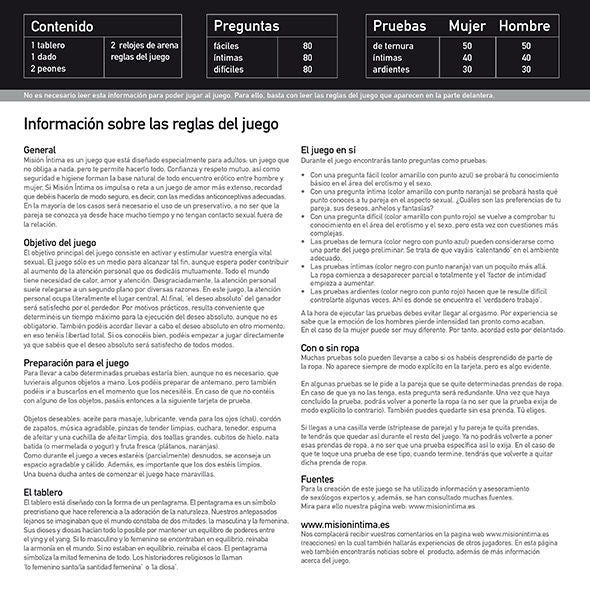 Misión Intima (Originalausgabe) hat sowohl in Holland als auch in vielen anderen Ländern einen beispiellosen Erfolg erzielt. Es wurde in verschiedenen Sprachen veröffentlicht und weltweit in mehr als 30 Ländern verkauft. Wenn Sie es noch nicht gespielt haben, ... wagen Sie es, sich selbst herauszufordern und Ihrer sexuellen Beziehung einen aufregenden Schub zu verleihen.